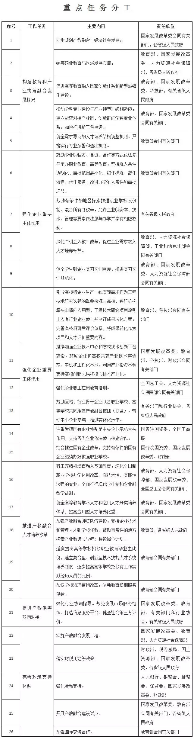 (二十九)強化工作協調。加強組織領導,建立發展改革、教育、人力資源社會保障、财政、工業和信息化等部門密切配合,有關行業主管部門、國有資産監督管理部門積極參與的工作協調機制,加強協同聯動,推進工作落實。各省級人民政府要結合本地實際制定具體實施辦法。