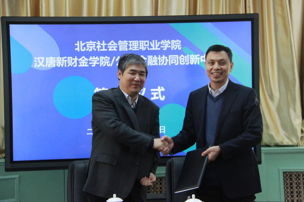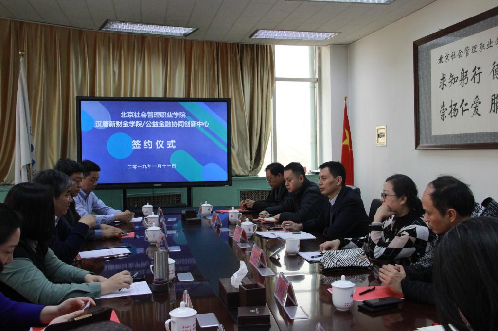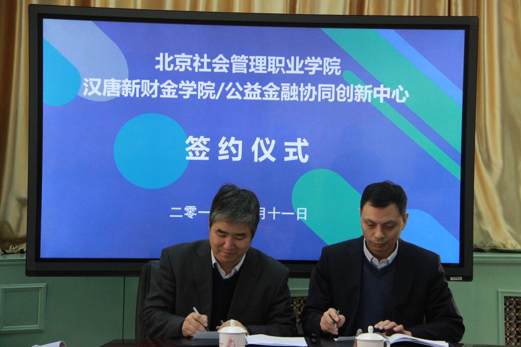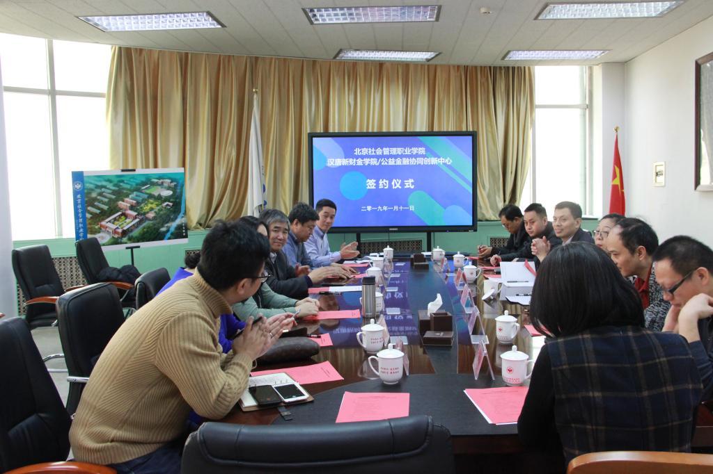 1月11日周五下午1:00在球王会体育官方app辦公樓四樓會議室舉行了成立“漢唐新财金學院暨公益金融協同創新中心”簽約儀式。