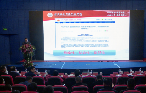 會上,來自政府部門、教育機構、養老福利院等單位的20餘位嘉賓圍繞健康養老政策制度、健康養老人才培養和健康養老産業發展三大方面分别作了關于養老産業發展趨勢、養老服務體系建設、失智老年人照護、“1+X”證書制度 、養老專業群建設、健康養老産教融合、職業教育集團建設、智慧健康養老産業、“醫養康”融合式發展産業運行等方面發言。與會者還緊緊圍繞京津冀、一帶一路戰略對養老服務産業發展、産教融合與校企合作、養老服務與人才培育、老年專業建設等進行了專題對話研讨,并參觀了燕達金色年華健康養護中心,舉行了健康養老産教融合會議。