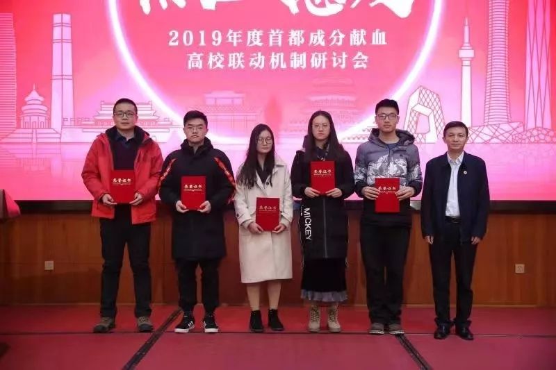 2019年12月21日-22日,北京市紅十字會和北京市紅十字血液中心聯合舉辦第三屆首都成分獻血高校聯動機制研讨會。來自三十餘所高校的師生代表共聚一堂,通過交流探讨、總結經驗、樹立典型,促進成分獻血事業發展。北京市紅十字會組織宣傳部副部長李勝華、捐獻服務中心主任梁永清,北京市紅十字血液中心副主任王鴻捷、血源管理科科長徐文、獻血服務二科科長周倩出席本次活動。大會表彰了為全市無償成分獻血工作做出突出貢獻的先進單位,我院連續第二年榮獲首都高校“無償成分獻血最佳組織獎”,我院吳亞男同學獲首都成分獻血“優秀志願者”。