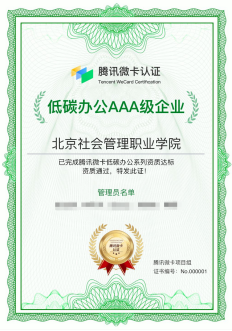 在綠色低碳方面,社職微卡通過采用電子碼及身份識别技術,節省了紙張使用和電力使用,直接或間接的達到了節能減排的目的,從而實現二氧化碳的“零排放”,做到了碳中和。目前我院通過社職微卡這一方式累計減排量1550000g,相當于節省紙張近20000張,節省掂量2200多度,獲得了騰訊微卡低碳辦公AAA級認證。