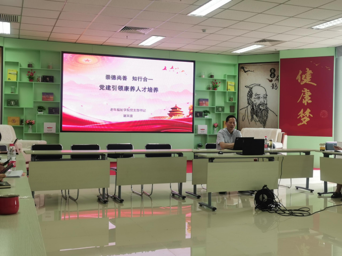 6月29日,老年福祉學院黨支部書記屠其雷同志以“崇德尚善 知行合一——黨建引領康養人才培養”為題講授專題黨課,老年福祉學院全體教職員工,35名入黨積極分子等通過線上線下方式參加黨課學習。