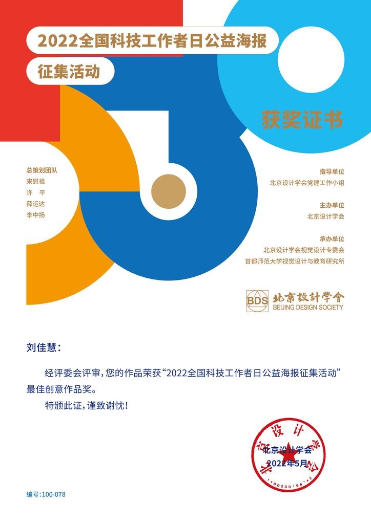 為迎接第六個全國科技工作者日,北京設計學會主辦了“2022全國科技工作者日公益海報征集活動”,共收到來自全國各地314位作者的495幅投稿作品,既有來自“雙一流”高校...