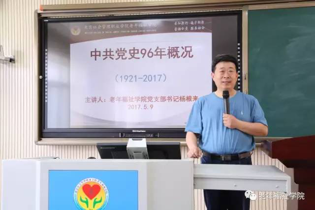 2017年5月9日,老年福祉學院舉辦第十期學生業餘黨課培訓開班儀式暨第一講。老年福祉學院黨支部書記楊根來院長、副院長皮微雲副教授、黨支部副書記王偉副院長、組織委員兼團總支書記曹雅娟老師、宣傳委員王宏強老師以及韓曉婷、李晶老師、劉姝老師、楊光老師等部分黨員老師出席會議。開班儀式由王偉主持。
