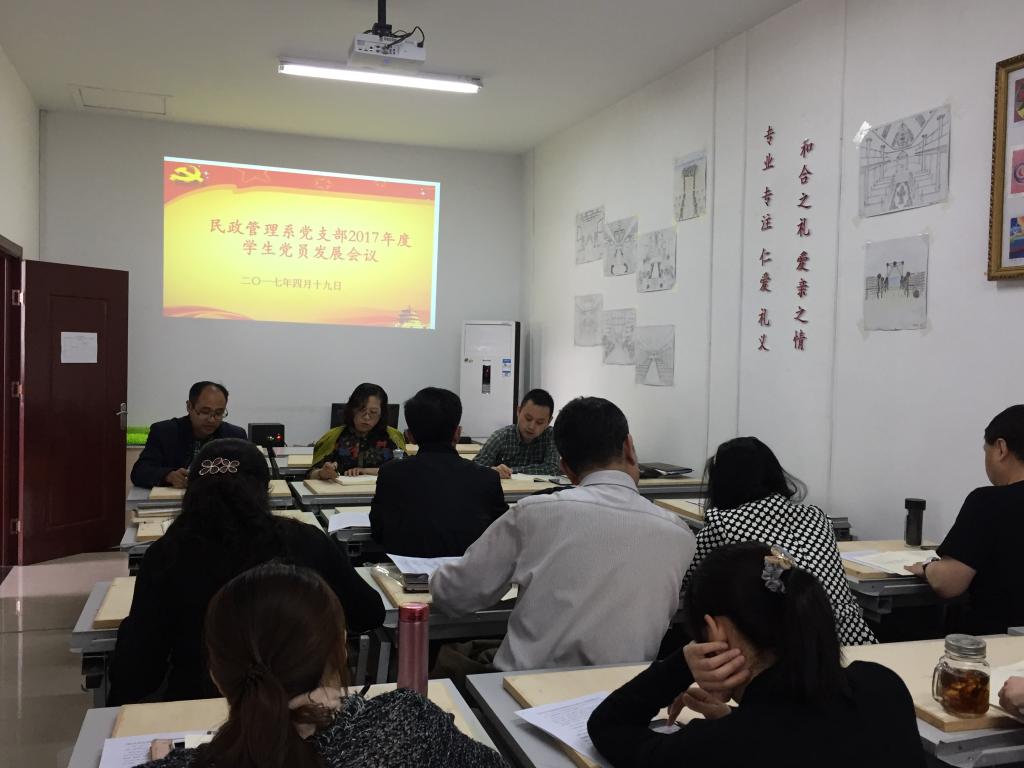 4月19日下午,民政管理系黨支部召開關于學生黨員重點培養對象發展讨論會。系黨支部書記王曉玫、副書記崔傑以及全體教師黨員參加此次會議。